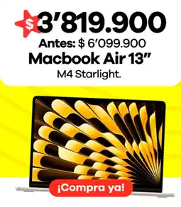 | MacBook Air 13 Pulgadas Chip M4 CPU 10 Núcleos GPU 8 Núcleos - RAM 16GB - SSD 256GB - Azul Cielo | Alkomprar | $ 5.879.010,00 | $ 4.899.010,00 | $ 980.000,00 Descuento | 22 enero 2026 | 05 febrero 2026 |