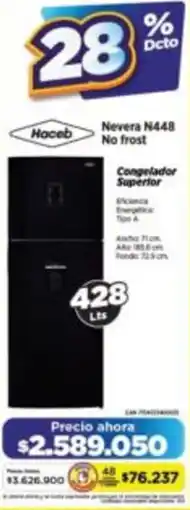 | Nevera HACEB No Frost Congelador Inferior 499 litros con Dispensador de Agua BM543SEMIDA Gris | Alkomprar | $ 4.545.900,00 | $ 3.999.050,00 | $ 546.850,00 Descuento | 29 enero 2026 | 12 febrero 2026 |