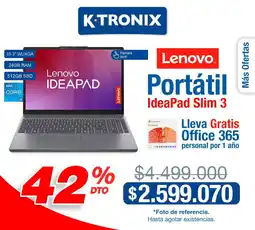 | 1 | Lenovo Ideapad Slim 3 + Office 365 | Ktronix | $ 4.499.000,00 | $ 2.599.070,00 | $ 1.899.930,00 Descuento | 10 febrero 2026 | 13 febrero 2026 | Mirar oferta | |