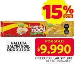 Ara Galletas Saltín Noel Queso Mantequilla x 3 tacos / 338g ofertaGalletas Saltín Noel Queso Mantequilla x 3 tacos / 338gAra$ 5.990,00$ 5.490,00$ 500,00 Descuento23 febrero 202301 marzo 2023