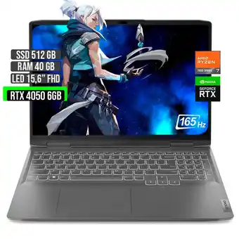 LOQ AMD RYZEN 7-7840HS RTX 4050 6GB SSD 512GB RAM 40GB LED 15,6 FHD 165Hz oferta en el catálogo de Falabella