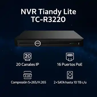 NVR Tiandy TC-R3220 - 20 Canales IP PoE 200W 4K H265+ descuento en Falabella