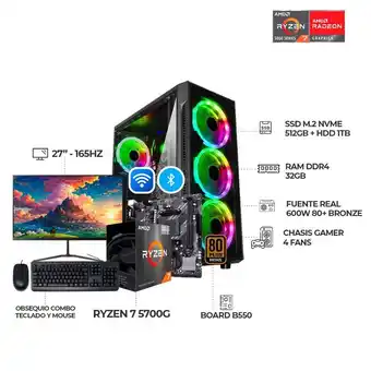 PC GAMER R7 5700G - BOARD B550 WIFI - 32GB RAM - 512GB SSD + 1TBHDDMONITOR27 oferta en el catálogo de Falabella