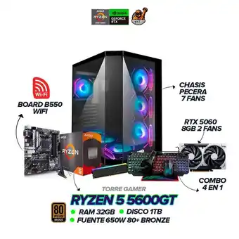 PC Gamer Ryzen 5 5600GT / RTX 5060 8GB / 32GB / 1TB / B550 / 650W 80+ BRZ descuento en Falabella