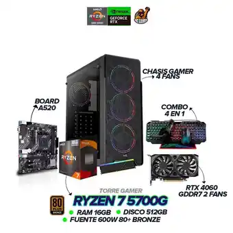 PC Gamer Ryzen 7 5700G / RTX 4060 / 16GB RAM / 512GB SSD / 600W / Combo 4 en 1
