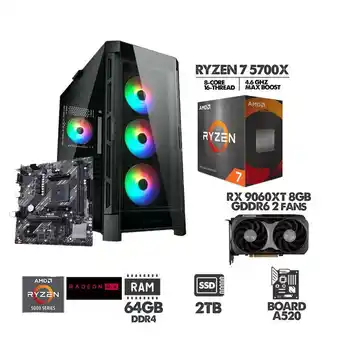 PC GAMER RYZEN 7 5700X -RX 9060XT 8GB - SSD 2TB - 64GB RAM - CHASIS 4FANS