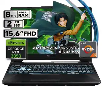 PORTÁTIL GAMER RYZEN 5 7535HS 8GB RAM 2TB SSD RTX 3050 4GB 15,6 FHD BLACK descuento en Falabella