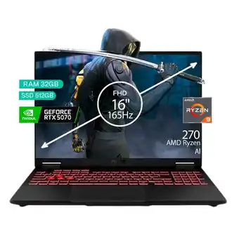 Ofertas y promociones de Portátil Gamer TUF A16 AMD RYZEN 9 270 32/512 SSD RTX 5070 8GB 16 FHD 165Hz Windows 11 H online del catálogo actual Falabella