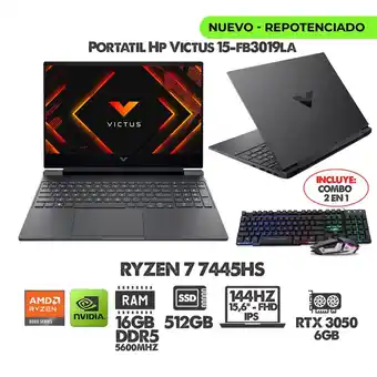 PORTATIL GAMER VICTUS RYZEN 7 7445HS- 15.6 144HZ- RTX 3050 - RAM 16GB DDR5 SSD 512GB + COMBO GAMER en oferta y promociones online del catálogo actual de Falabella