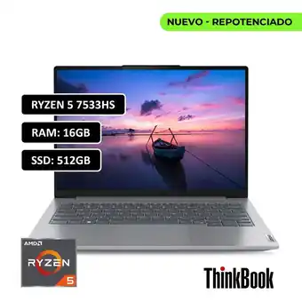 Oferta de PORTATIL THINKBOOK AMD RYZEN 5 7533HS - 16GB DDR5 - 512GB SSD - 14 WUXGA - RJ45 - WIN11 PRO en Falabella