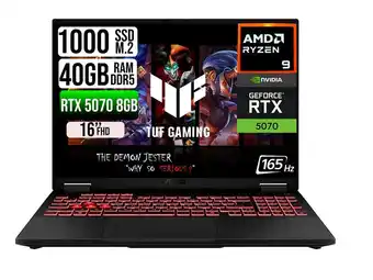 Oferta de PORTATIL TUF A16 AMD RYZEN 9 270 RTX 5070 8GB SSD 1TB RAM 40GB 16 FHD 165HZ en Falabella