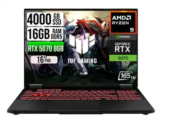 PORTATIL TUF A16 AMD RYZEN 9 270 RTX 5070 8GB SSD 4TB RAM 16GB 16 FHD 165HZ oferta en el catálogo de Falabella
