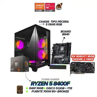 TORRE GAMER RYZEN 5 8400F / RX 9060XT 16GB / 16GB RAM / SSD 1.5TB / B840 / 700W descuento en Falabella