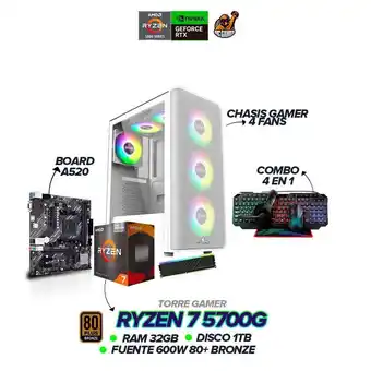TORRE GAMER RYZEN 7 5700G / RAM 32GB / 1TB SSD / Board A520 / 600W 80+ BRONZE en oferta y promociones online del catálogo actual de Falabella