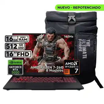 TUF A16 RYZEN 7 260 - RTX 5050 8GB GDDR7 - 16GB RAM - 512GB SSD - 16 FHD descuento en Falabella