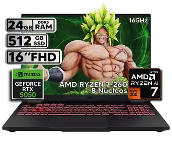 TUF A16 RYZEN 7 260 - RTX 5050 8GB GDDR7 - 24GB RAM - 512GB SSD - 16" FHD descuento en Falabella