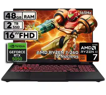 Oferta de TUF A16 RYZEN 7 260 - RTX 5050 8GB GDDR7 - 48GB RAM - 2TB SSD - 16 FHD en Falabella