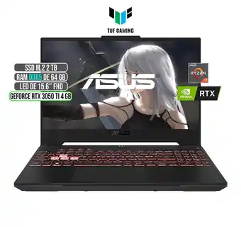 Promoción TUF AMD RYZEN 7-6800H RTX 3050Ti 4GB SSD 2TB RAM 64GB LED 15,6 FULL HD 144Hz vigente en Falabella desde 11-01 hasta 2-02.